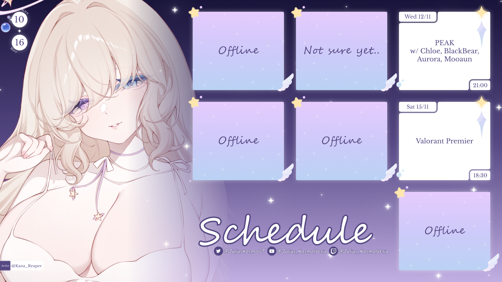 Don’t mention other VTubers/streamers unless Julius brings them up first. Also, please avoid mentioning Julius in someone else’s stream.
